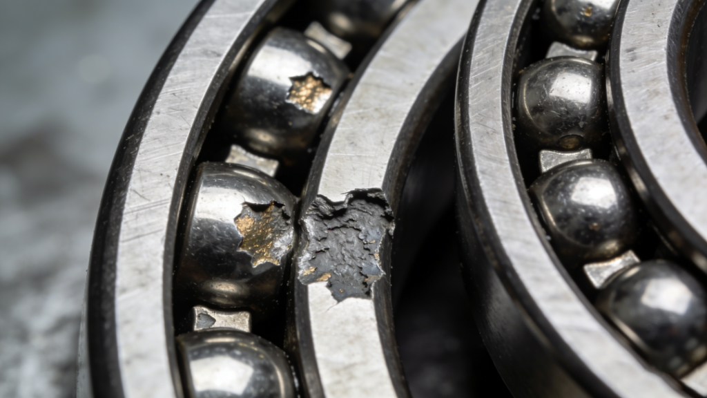 - Внешний осмотр: на дорожках или телах качения появляются выемки, напоминающие «рыбью чешую», сопровождающиеся легким окислительным изменением цвета; в тяжелых случаях отдельные раковины сливаются в сплошные участки.
